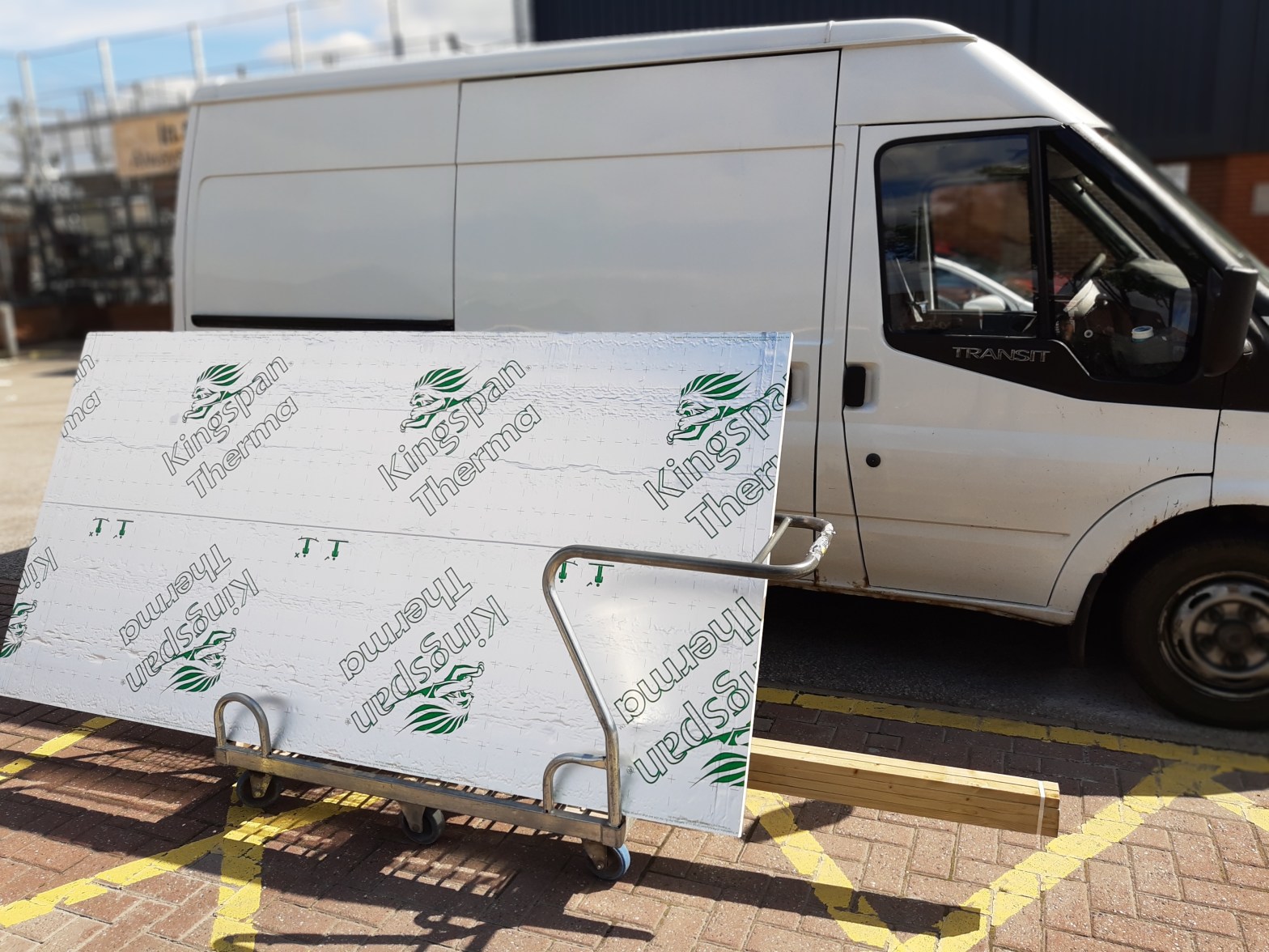 It makes sense to insulate the floor, walls, back doors and ceiling of your van and as heat rises it makes sense to put the biggest stuff in the ceiling – that was the advice we were given. A lot of people recommend 25mm for the floor and 50mm for the ceiling. We went with 25mm for both due to two factors. The metal ribs on the ceiling of the van were 40mm and we didn’t want to lose 10mm more head height to due using 50mm insulation mainly because Peter is 6ft 2inches and our van is a medium height van. If it was a high top then we would have used 50mm and gone for maximum depth. We chose PIR board for our van due to its low thermal conductivity. A lot of people were using Celotex which is a brand of PIR board as far as I am aware. Kingspan and Celotex are two examples of PIR board that are commonly used in insulation. They are readily available from most DIY shops. We used Kingspan and purchased ours from Wickes. (www.wickes.co.uk) These PIR boards are great for large flat surfaces, they have a low thermal conductivity value of 0.022 W/mK , are super lightweight and can easily be cut to size with a craft or bread knife as long as you don’t mind the screeching sound!!