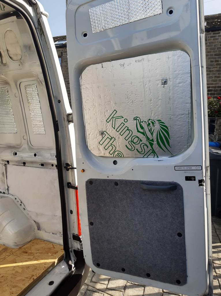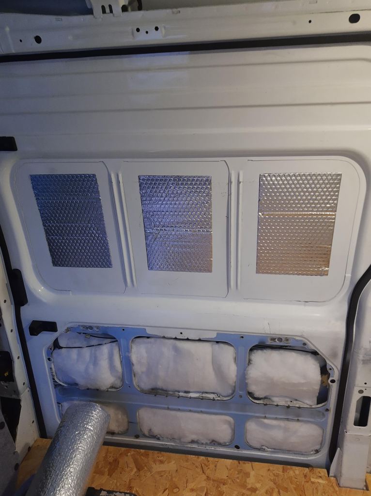 the upper part of the rear doors over the top of insulation that we’d put in underneath