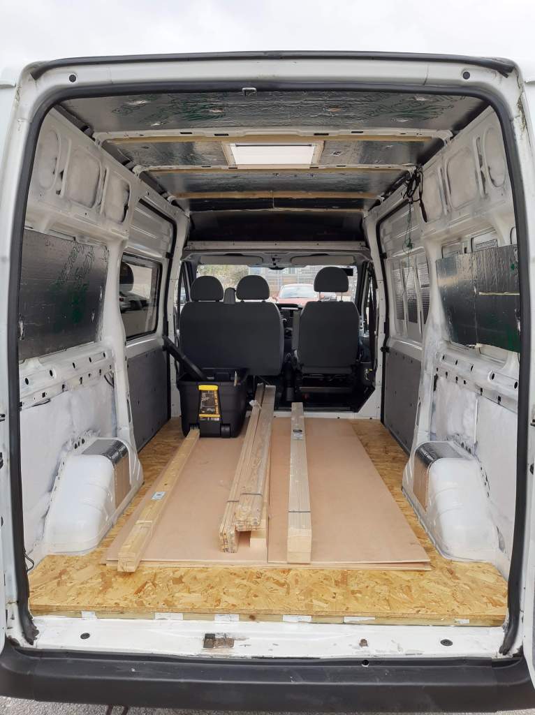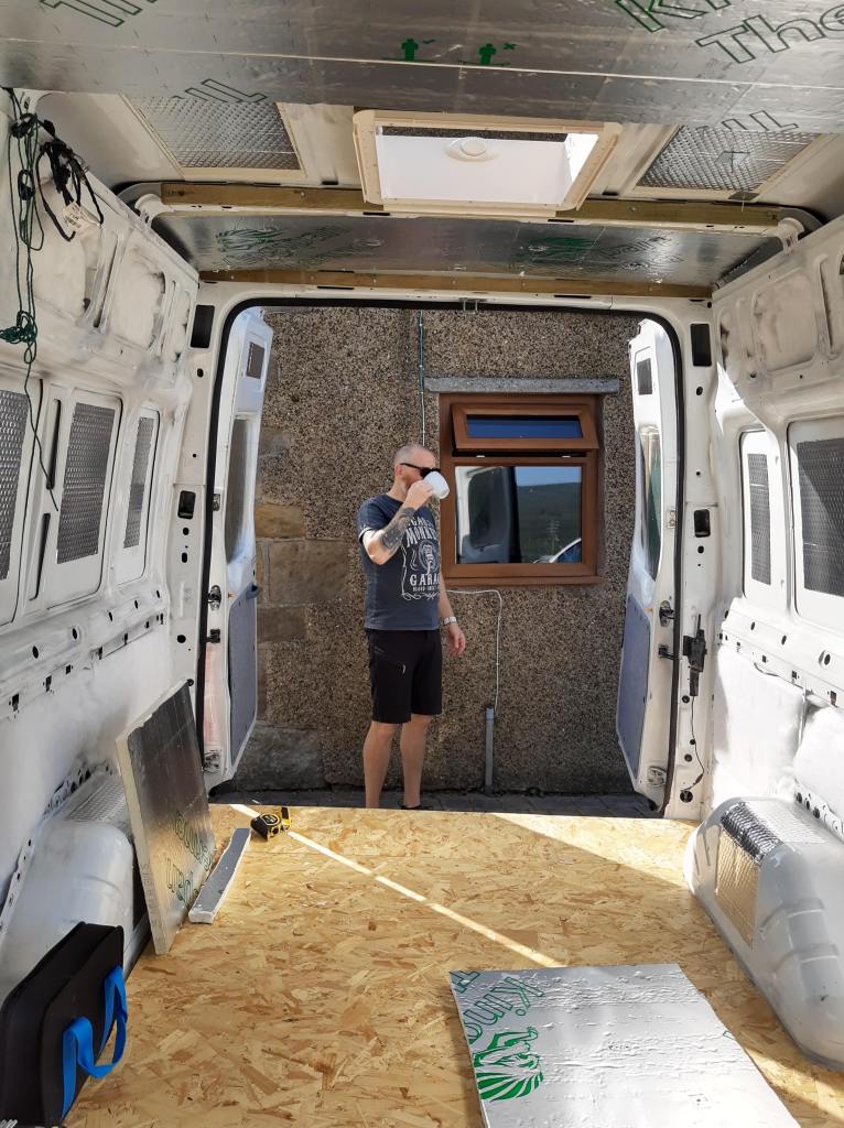 - It’s really exciting to build and create stuff but before we could even consider insulating we spent a considerable amount of time ‘making good’ – stripping, filling, treating, priming and re-painting our van. Then we sound deadened the van with the dodo dead mat hex mat http://www.dodomat.com/ at a cost of approx £50.
